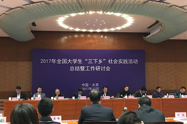 本网讯 今年是大学生“三下乡”社会实践活动开展20周年,12月25日,2017年大学生“三下乡”社会实践活动总结暨工作研讨会在清华大学召开。团中央书记处书记傅振邦出席会议并讲话。全国学联、中宣部宣教局、中央文明办、教育部思政司、团中央学校部、各高校有关同志及学生代表出席研讨会。我校团委相关负责人参加了会议。