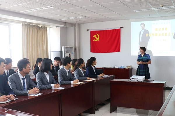 王忠强首先对莅临大赛的评委表示热烈欢迎,向晋级决赛的各位同学表示了衷心祝贺。他指出,“切实做好以高校毕业生为重点的青年就业工作”是学校全面贯彻落实党的十九大及习近平总书记系列讲话精神,本着对党和人民高度负责的态度,以办人民满意的教育为目标的关键落脚点。2018年,全国高校毕业生总量再创新高,达到820万人,大学生就业竞争更加激烈,我校毕业生应直面挑战,加强社会实践锻炼,主动提升综合素质和就业竞争力。致辞中,王忠强结合习近平总书记在北京大学师生座谈会上的讲话“不论学习还是工作,都要面向实际、深入实践,实践出真知。” 谈到,求职是同学们从大学象牙塔步入社会,由青葱学生向职场人士完成角色变化的必经过程,只有不断面向实际,深入实践,坚持躬行,知行合一,才能练就良好的职业素养,使同学们在毕业时更从容、更迅速地适应职场环境和实现自身的蜕变。最后,王忠强鼓励参赛选手把握机会,在赛事中展现新时代大学生活力,赛出风采,取得佳绩。