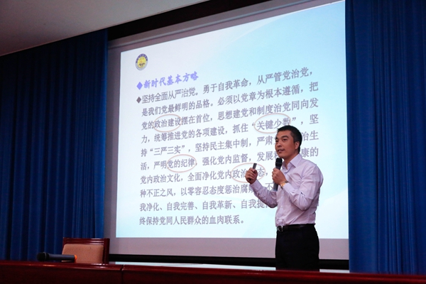 校党委副书记、纪委书记董晞在主持报告会时指出,党的十八大以来,我们党坚持思想建党和制度治党同向发力,制定和完善了一系列党内法规,通过提高党内法规的执行力,把党要管党、从严治党落到实处。加强纪律教育,是对党员领导干部行为的有效规范,同时也是对大家干事创业的积极保护,更是学校持续快速发展的重要保障。她希望通过这次纪律教育活动,进一步增强全体党员干部的纪律意识,使尊崇党章、遵守党规党纪成为我们每一个人的自觉行动,共同维护我们学校良好的政治生态和健康和谐的发展环境,为学校“双一流”建设、为学校事业发展助力。