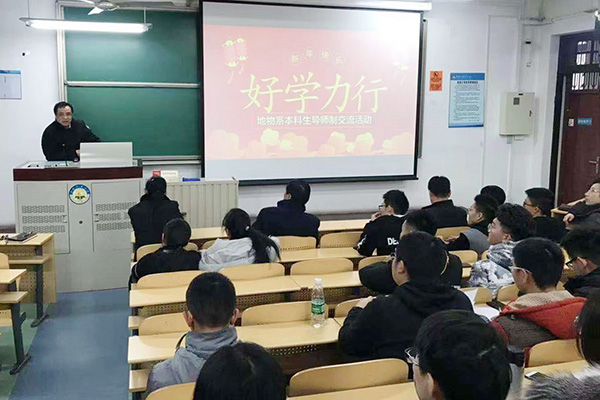 本网讯 1月6号下午,地球科学与测绘工程学院地物系全体教师,四个年级的“越崎班”学生,在学院路校区民族楼234开展“好学力行——地物系本科生导师制交流活动”。本次活动目的是为了加强学生和导师的交流,并表彰15级越崎班获得北京高校“十佳示范班集体”,号召其他年级学生向15级学生学习。