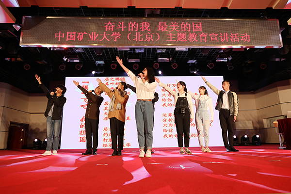 在大学生艺术团美轮美奂的舞蹈《花开矿大》中,主题教育宣讲活动正式开始。