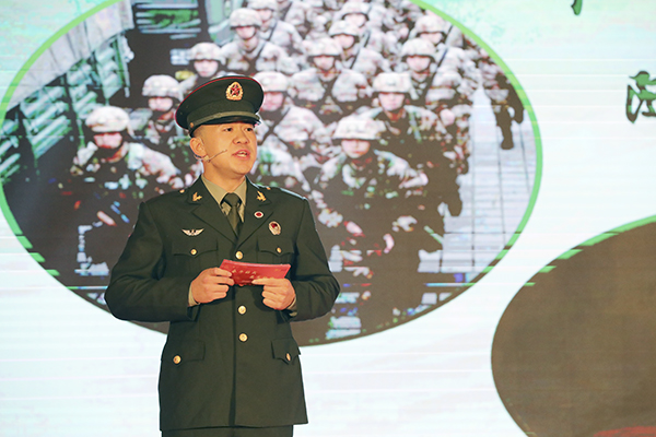 力建学院土木工程专业2017级学生王海龙,是一名退役大学生,于2016-2018年在中部战区陆军第81集团军野战军服役。他一身军装走上宣讲台,以《热血筑军魂》为题,讲述了“冬练三九,夏练三伏”的军营磨炼;一句“一家不圆万家圆”道出了人民子弟兵的高度政治觉悟;一声“若有战,召必回”铿锵有力、掷地有声,赢得了现场观众的热烈掌声,充分展现了矿大学子携笔从戎的豪情壮志。