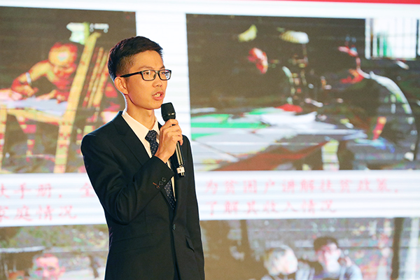 2012年以来,中国矿业大学(北京)定点扶贫广西壮族自治区河池市都安瑶族自治县,在我校师生的共同努力下,扶贫工作得到了广西各级政府和人民群众的充分肯定。在扶贫工作中,我校驻村第一书记谢均岩老师表现突出,被授予“2018年度河池市脱贫攻坚先进个人贡献奖”。刚刚回到矿大的他,讲述了自己从“北京教书匠”到“瑶山村书记”的故事。矿大扶贫干部默默奉献的精神深深触动了现场观众。