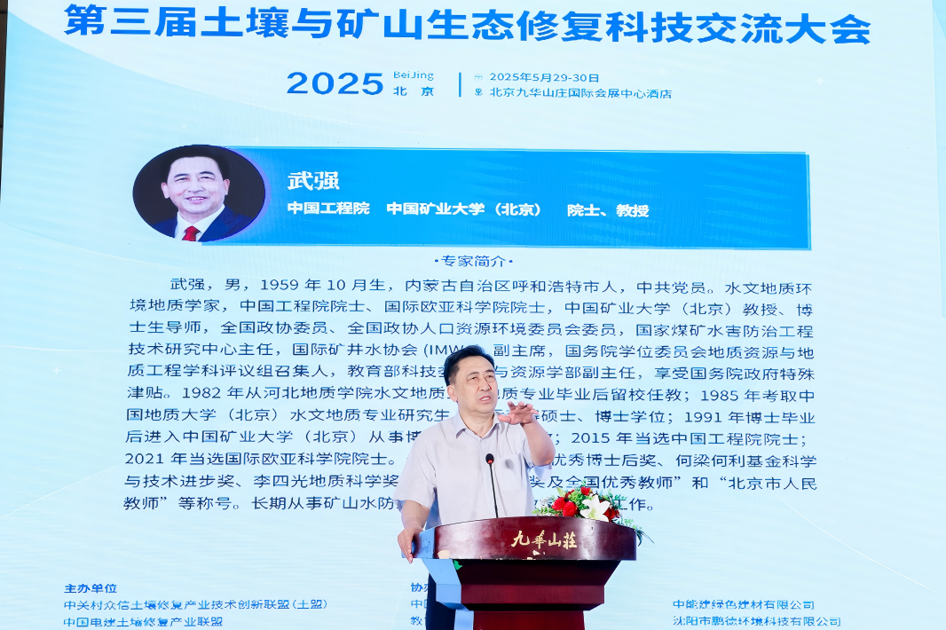 中国矿业大学(北京)教授、中关村众信土壤修复产业技术创新联盟(土盟)理事长黄占斌致辞并作主旨报告
