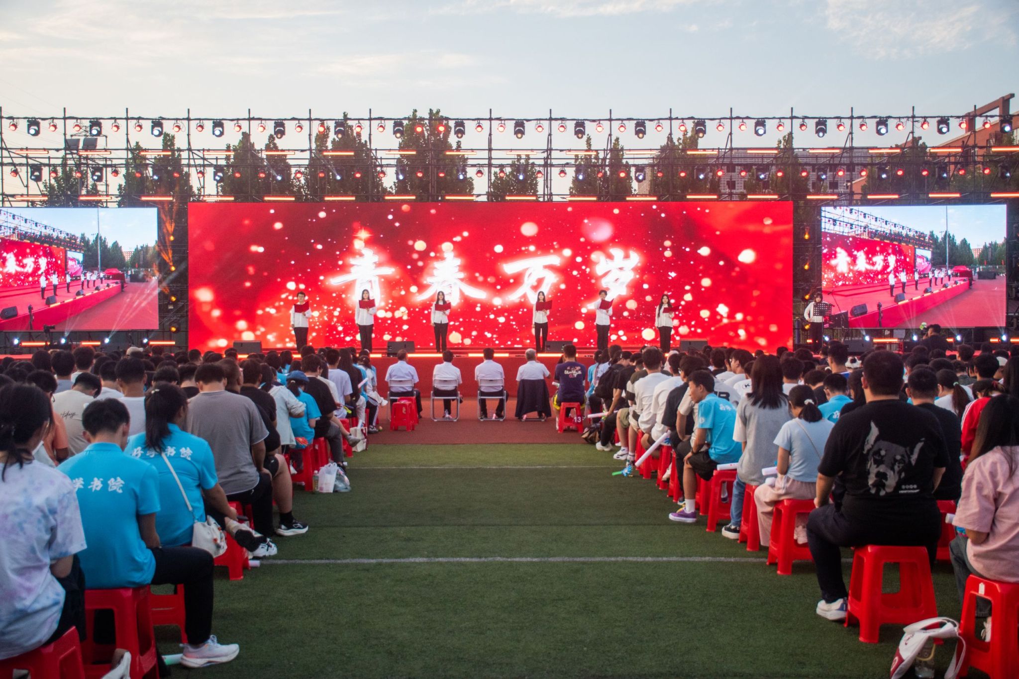 校十佳歌手代表联袂登台,一首《初声·新声》满是对大学生活的憧憬。“初声” 是新生的第一次发声,“新声” 是校园的新鲜力量,象征着新一代学子在大学舞台上的初绽光芒。
