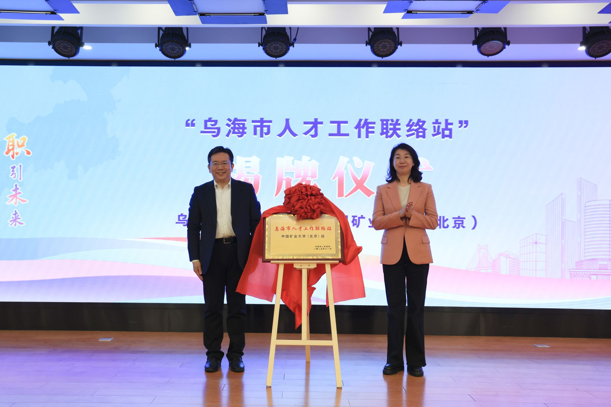 刘波与张明明共同为“乌海市人才工作联络站——中国矿业大学(北京)站”揭牌