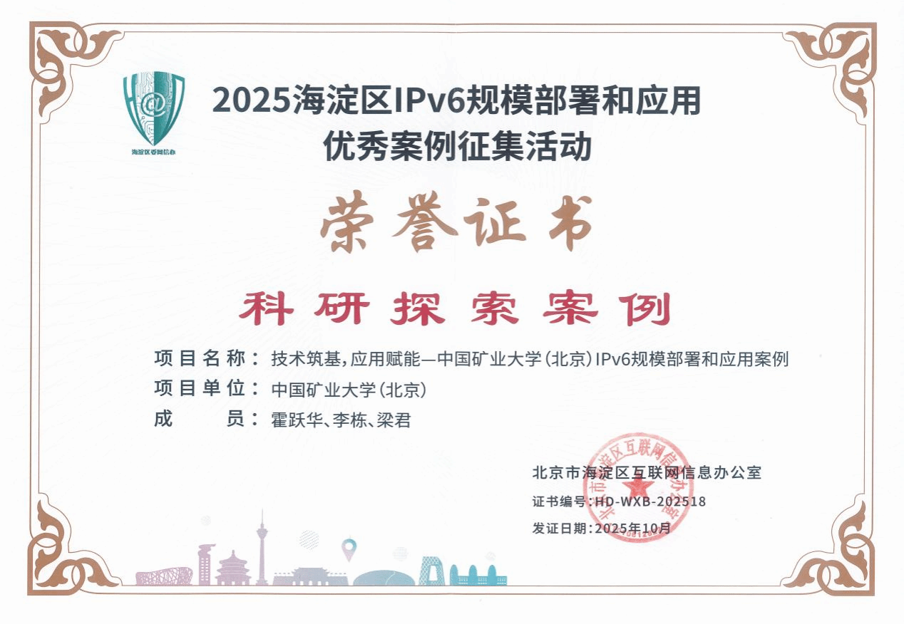 中国矿业大学(北京)IPv6规模部署与应用案例入选海淀区优秀科研探索案例