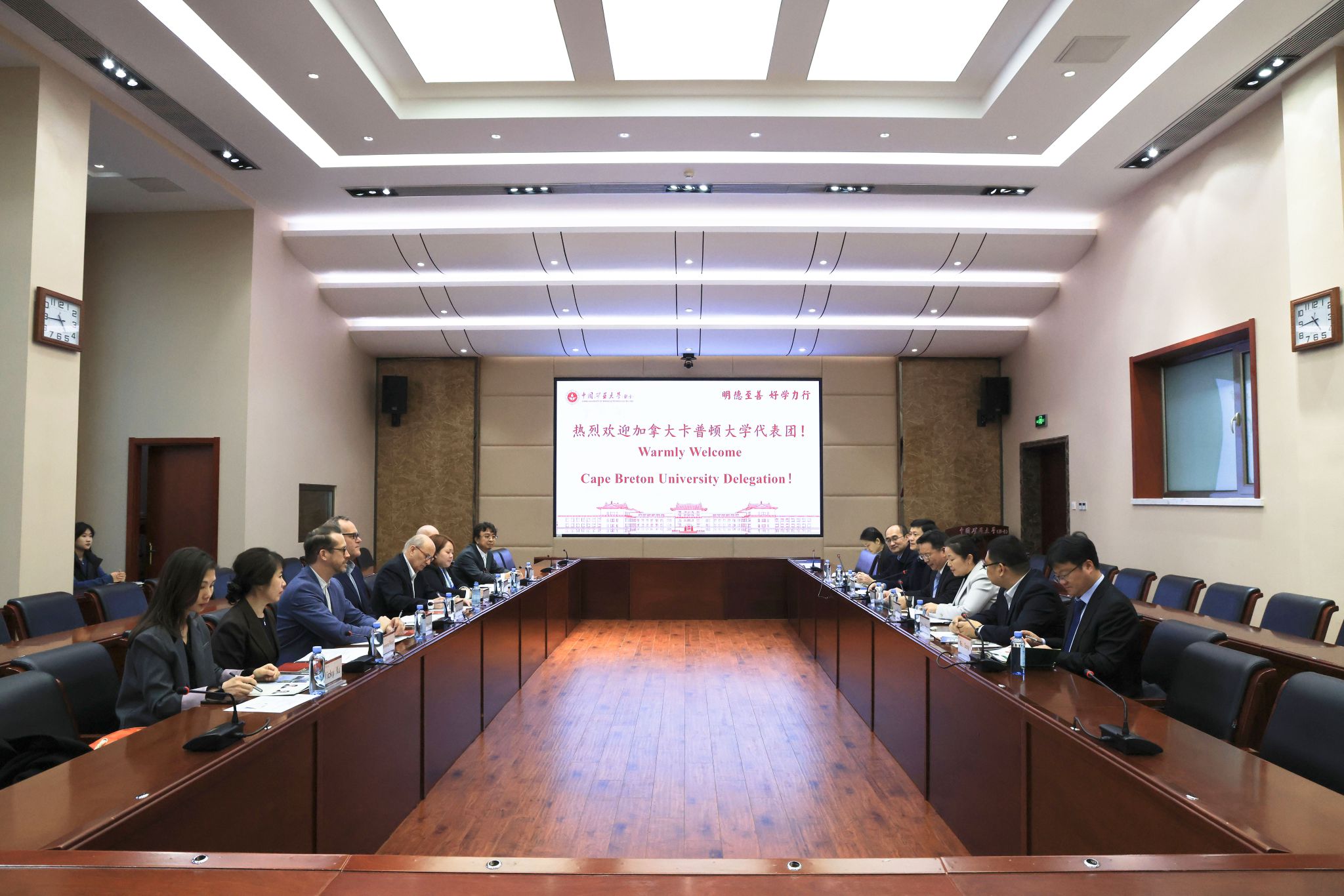 加拿大卡普顿大学商学院院长John Nadeau、国际招生与全球合作部总监Victor Tomiczek、前国际合作事务副校长John MacKinnon、语言中心院长Bob Liu,学校应急管理与安全工程学院、人工智能学院、管理学院以及国际合作与交流处负责人参加会谈。