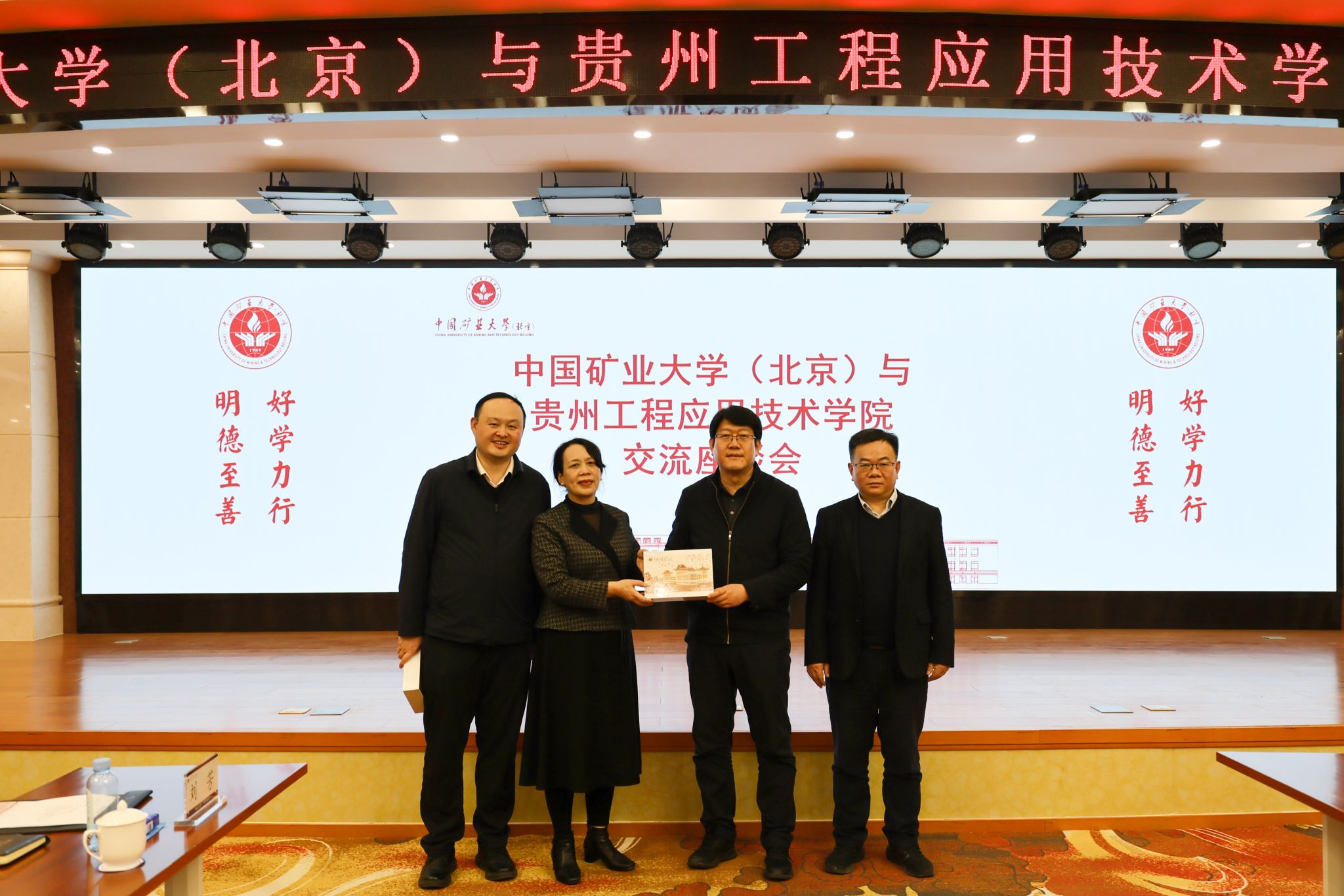 韩尚峰介绍了学校的历史沿革以及近年来事业发展取得的成绩。他表示,学校正深入学习贯彻党的二十届四中全会精神,围绕能源强国建设,持续发挥学校在能源和安全领域特色优势,努力开创“扬煤吐气、煤飞色舞”的高质量发展新局面,不断将办学优势转化为服务国家战略的实际贡献。学校与贵州工程应用技术学院学科体系相近、合作基础良好。面向未来,希望双方紧抓“十五五”建设机遇,共同谋划合作路径,秉持“务实合作求发展,互利共赢谋未来”的理念,聚焦战略性关键矿产资源高效开发利用等重要领域深化合作,一体推进教育科技人才事业发展。