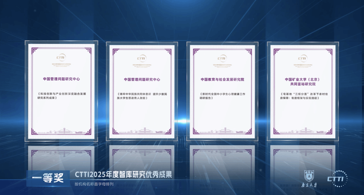 本网讯 11月21日,由南京大学主办,南京大学中国智库研究与评价中心承办的“2025 新型智库治理论坛”颁发年度智库研究优秀成果奖项。共同富裕研究院院长杨璐璐教授撰写的《宅基地“三权分置”改革下农村住房保障: 制度框架与实现路径》《以实现“三个共享”促进共同富裕做示范》分别荣获一等奖和二等奖。