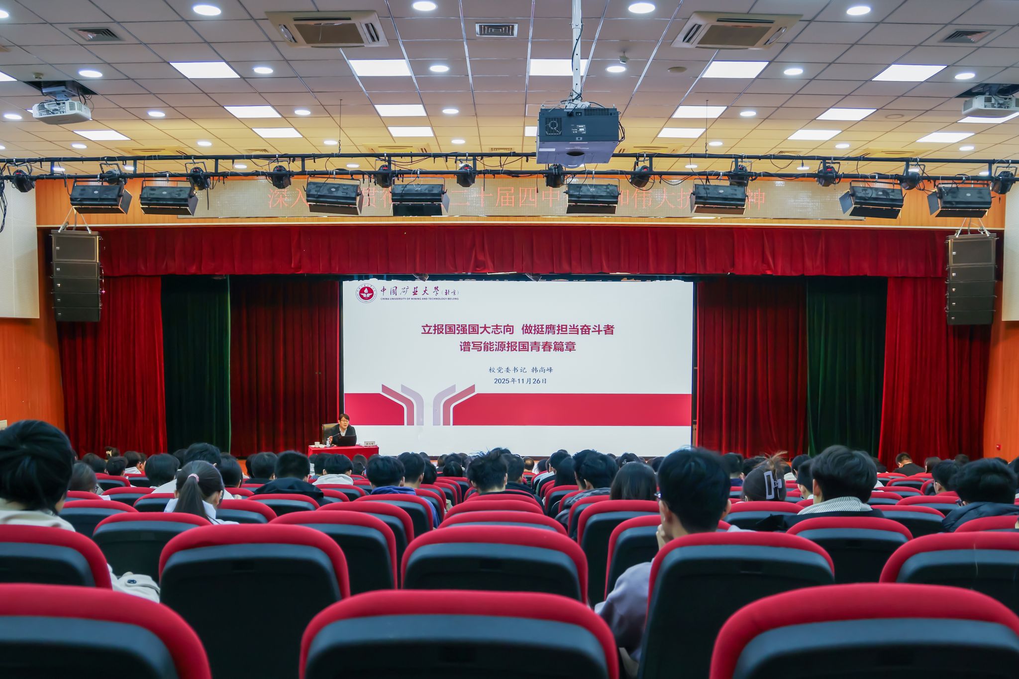 韩尚峰深入分析国内外发展形势和能源领域现状,结合中国式现代化的本质要求,指出能源安全是关系国家经济社会发展的全局性、战略性问题。他阐述了我国能源结构优化、煤炭清洁高效利用取得的巨大成就,以及煤炭在当前及未来一段时期内作为国家能源安全“压舱石”和“稳定器”的重要作用。他强调,面对能源强国、教育强国建设的目标任务,作为以能源与安全为特色的“双一流”大学,学校必须心怀“国之大者”,紧密对接国家能源安全战略需求,扛起守牢能源安全底线的政治责任,奋力开创世界一流能源科技大学建设新局面,为筑牢高质量发展能源资源底盘贡献矿大力量。