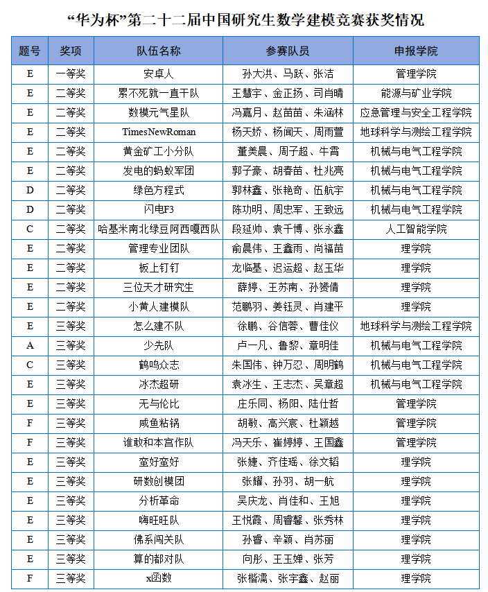 学校在第二十二届中国研究生数学建模竞赛中取得新突破