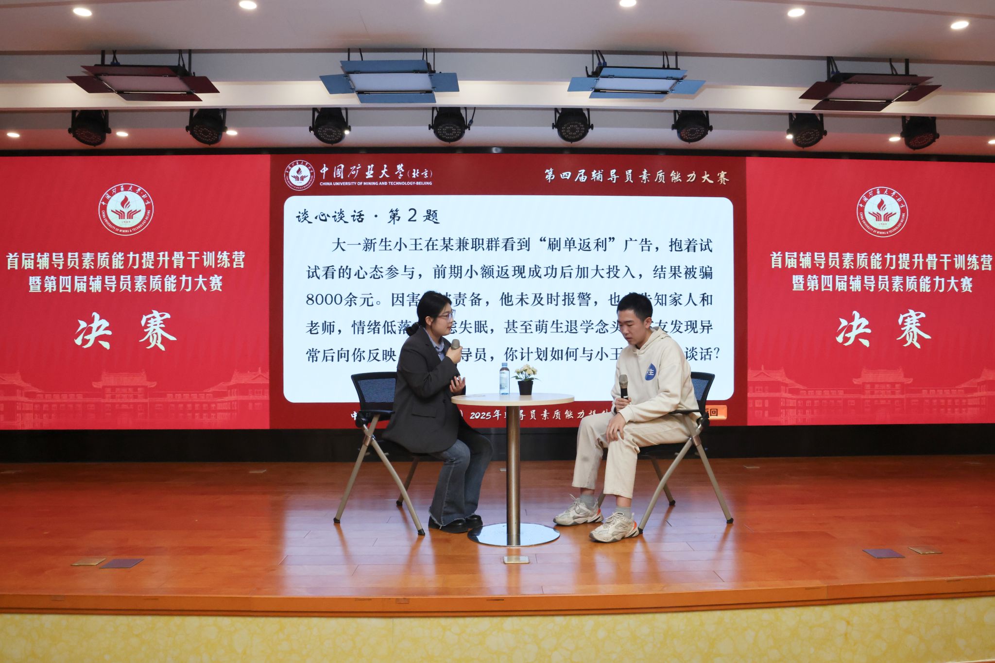 决赛设置案例研讨与谈心谈话两大核心环节,题目紧扣辅导员工作的热点难点,聚焦“网络舆情应对”“刷单诈骗防范”“AI学术不端治理”等现实问题场景,精准对接辅导员日常工作问题痛点,激发了现场辅导员的深度思考和强烈共鸣。面对具有现实针对性的考题,参赛选手沉着应战,结合自身工作经验和训练营所学所得,逐一提出了具体详实、切实可行的解决方案。