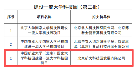 中国矿业大学(北京)国家大学科技园获北京市“建设一流大学科技园”项目支持