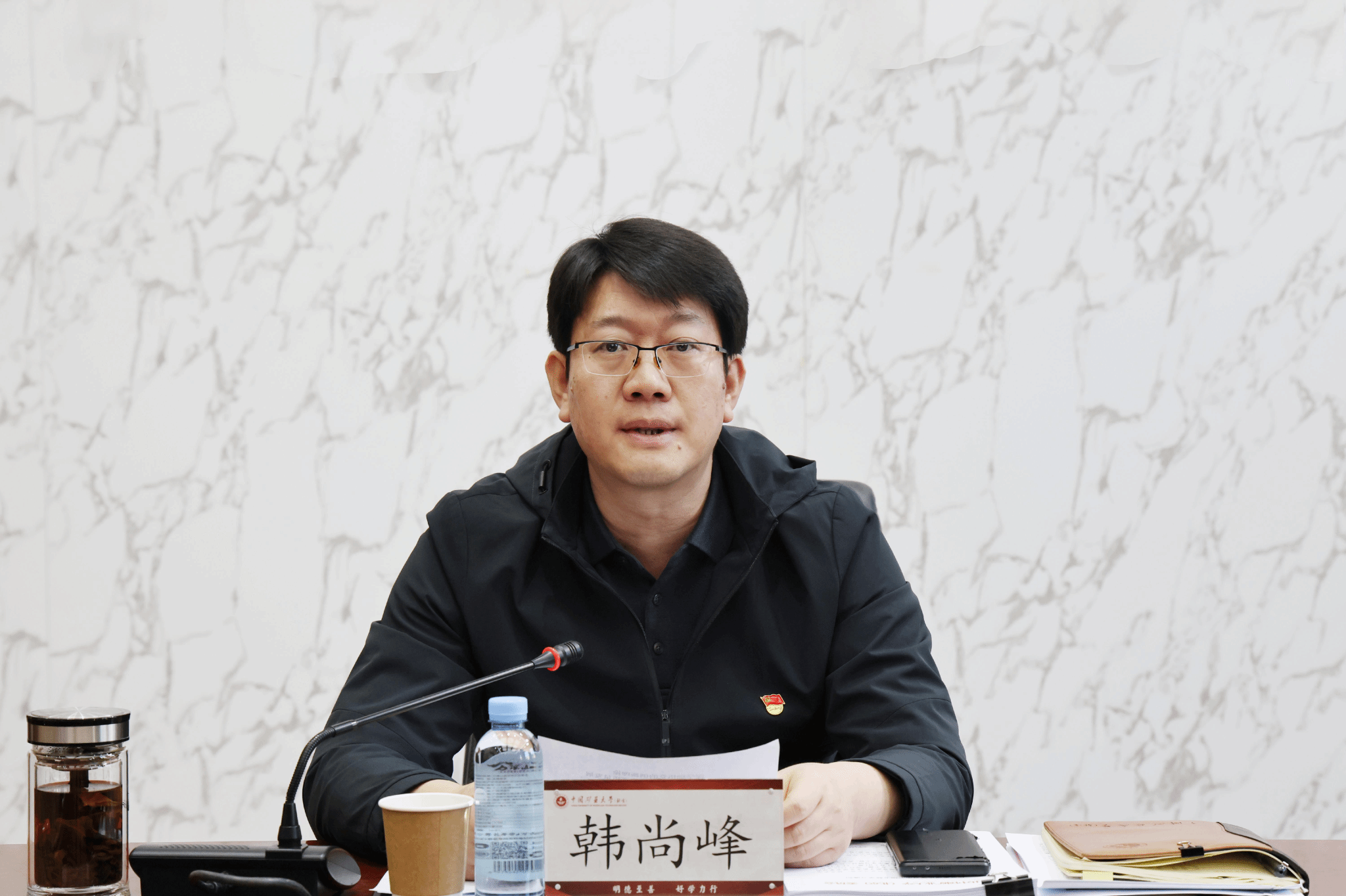 校党委书记韩尚峰主持会议并作领学发言