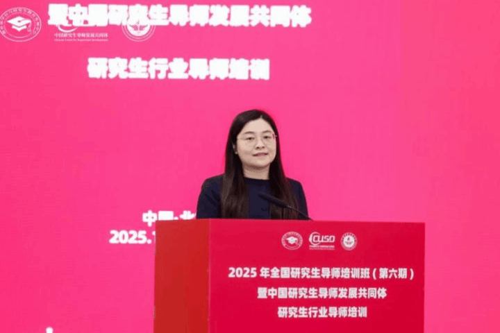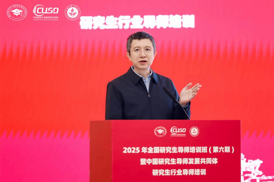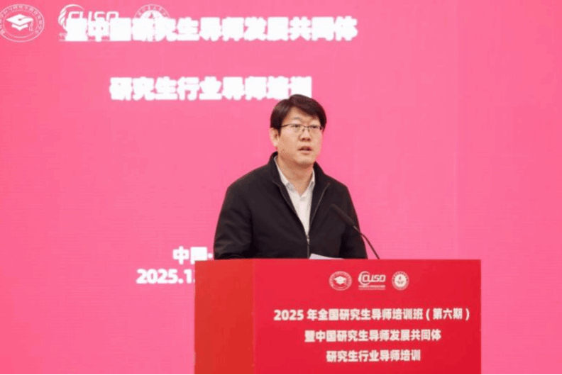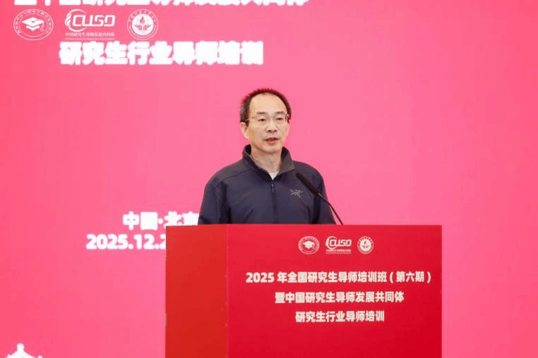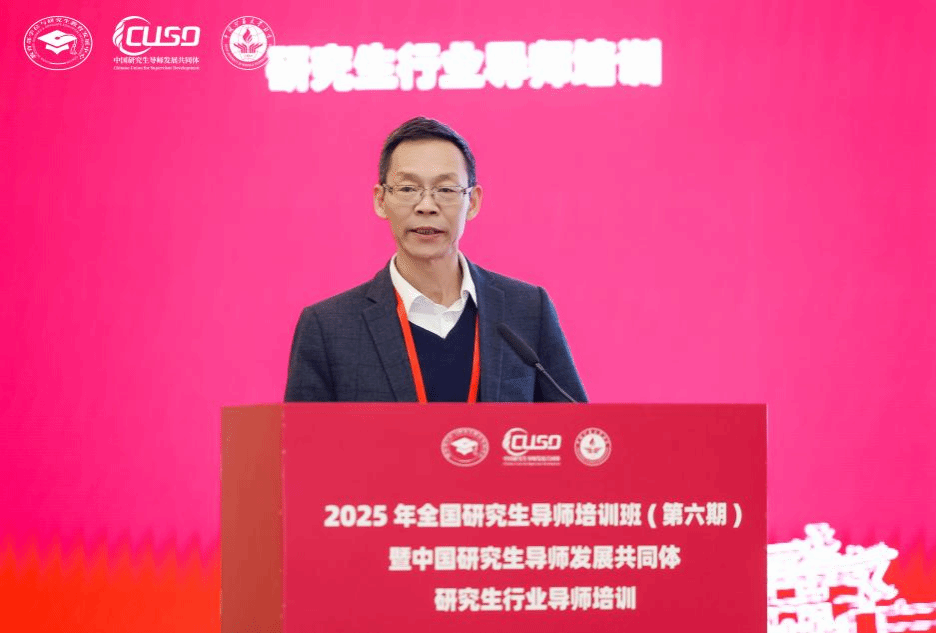 刘帅在致辞中表示,教育部坚决落实习近平总书记重要指示精神,将导师队伍建设作为提升研究生教育质量的核心工程,先后出台系列文件明确导师队伍建设和规范,构建三级导师培训体系,在导师队伍年轻化和人工智能发展重塑教育模式等挑战中,通过提高政治站位、坚持系统思维、注重文化涵育等方面推进新时期导师队伍建设。在工作新阶段,各方深化经验交流,促进互学互鉴,推动建设高素质、创新型导师队伍,服务国家重大战略和产业发展需求。