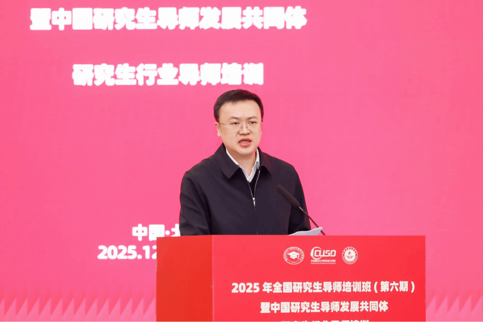本网讯 2025年12月29—30日,2025年全国研究生导师培训班(第六期)暨中国研究生导师发展共同体研究生行业导师培训在北京举办。本次培训由教育部学位管理与研究生教育司(以下简称“研究生司”)指导,教育部学位与研究生教育发展中心(以下简称“学位中心”)和中国研究生导师发展共同体主办(以下简称“共同体”),中国矿业大学(北京)承办。学位中心副主任亓彦伟,研究生司培养质量处处长刘帅,北京市教育委员会评估与监测处处长全志,共同体秘书处单位、哈尔滨工业大学副校长沈毅,中国矿业大学(北京)党委书记韩尚峰,副校长崔希民、汪文生等领导出席培训班开幕式,培训班由学位中心研究生工作处处长周学军、中国矿业大学(北京)副校长汪文生及共同体秘书处单位、哈尔滨工业大学研究生院副院长兼研究生导师发展中心主任李德友共同主持,来自全国各地的390余名行业企业研究生导师和研究生教育管理干部参加培训。