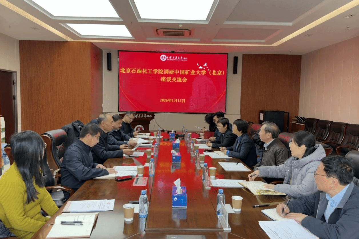 乔红兵对北京石油化工学院一行到访表示热烈欢迎,并介绍了学校历史沿革、学科特色、师资队伍、人才培养和科学研究等方面情况。他表示,北京石油化工学院是一所具有鲜明工程实践特色的高水平应用型大学,为国家能源化工行业和首都经济社会发展培养了大批优秀人才。中国矿业大学(北京)面向国家能源安全战略和现代化建设重大需求,立足矿业安全特色优势,致力建设成为世界一流能源科技大学。期待以此次调研为契机,搭建学习交流平台。