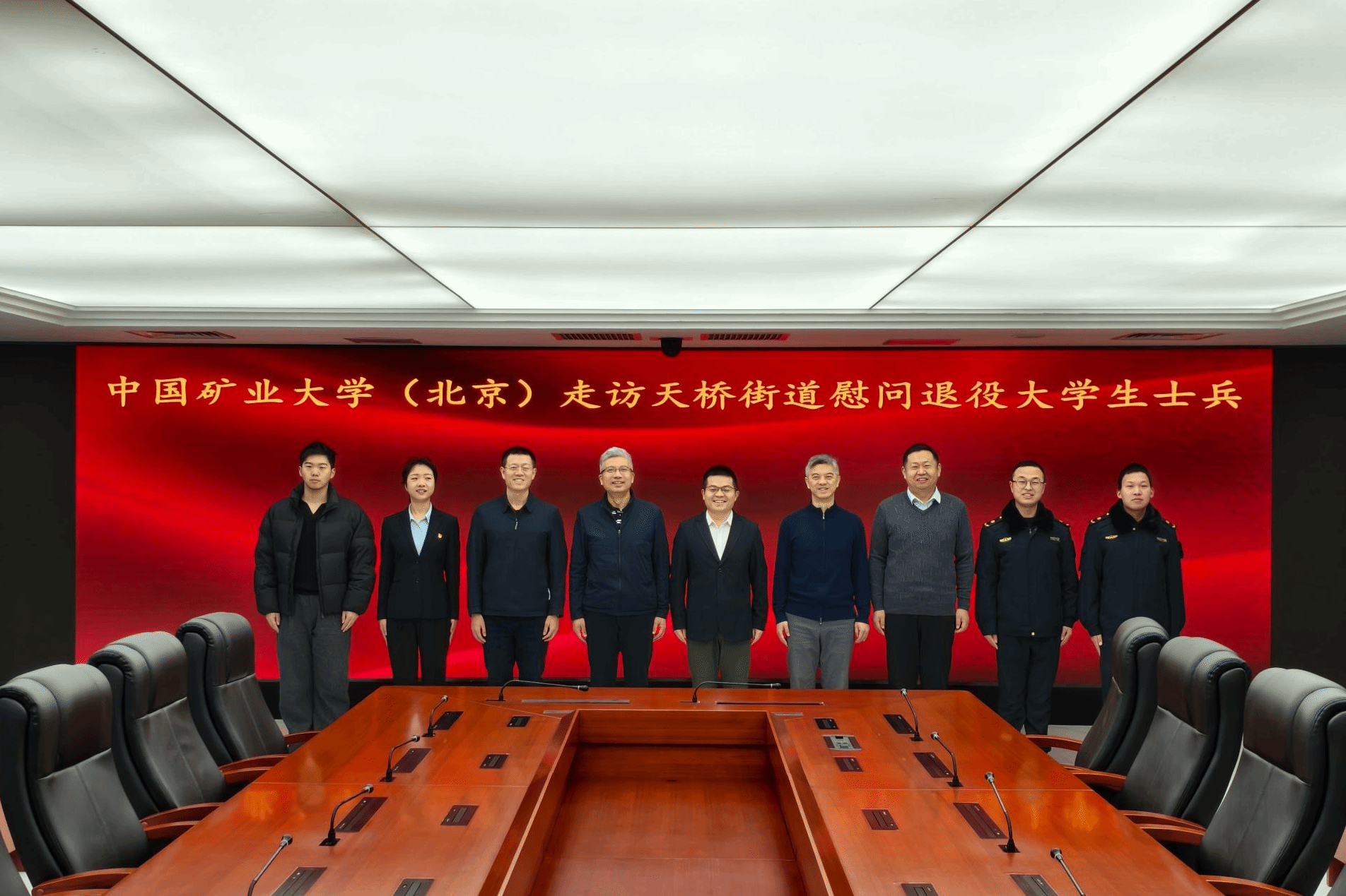 安宇向天桥街道长期以来对退役大学生士兵的关心培养表示感谢,并介绍了学校的发展历程与办学特色。他表示,学校始终高度重视国防教育工作,持续向部队输送大批优秀大学生士兵,为国防事业发展贡献矿大(北京)力量。他指出,退役大学生士兵是校地共育的宝贵人才,希望同学们始终牢记“退伍不褪色、退役不退志”的初心使命,在街道岗位上续写青春荣光。同时,他表达了深化校地合作的殷切期望,提议双方以此次走访为契机,建立常态化沟通机制,在国防教育、红色文化传承、思想政治教育、学生社会实践等领域开展更广泛合作,实现资源共享、优势互补,共同推动首都经济文化建设。