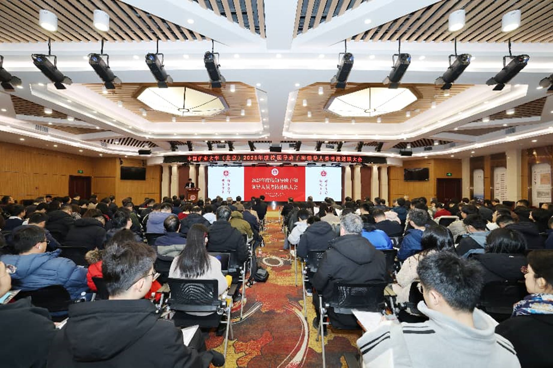 本网讯 2月27日-28日,学校在福中苑报告厅召开2025年度校领导班子和领导人员考核及干部选拔任用“一报告两评议”暨处级班子(干部)考核测评会,全体校领导、处级干部和其他各方面代表180余人参加会议。