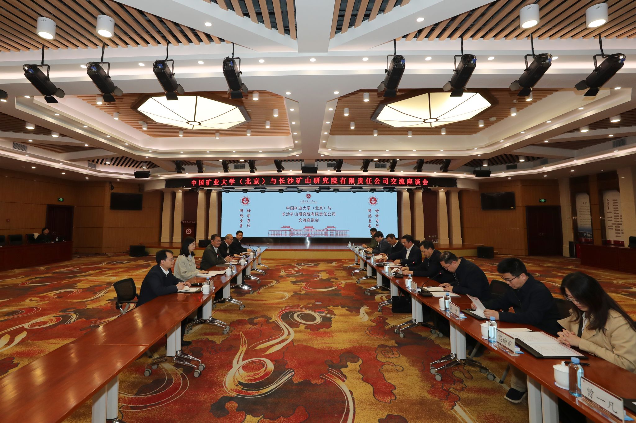 长沙矿山研究院有限责任公司党委委员、副总经理褚洪涛,中国五矿科技创新部平台处,长沙矿山研究院有限责任公司科技创新部、市场开发部、采矿技术与装备事业部和检测中心,学校科学技术研究院、对外联络与合作处、应急管理与安全工程学院、能源与矿业学院、地球科学与测绘工程学院、国家煤矿水害防治工程技术研究中心等单位相关负责人参加座谈。
