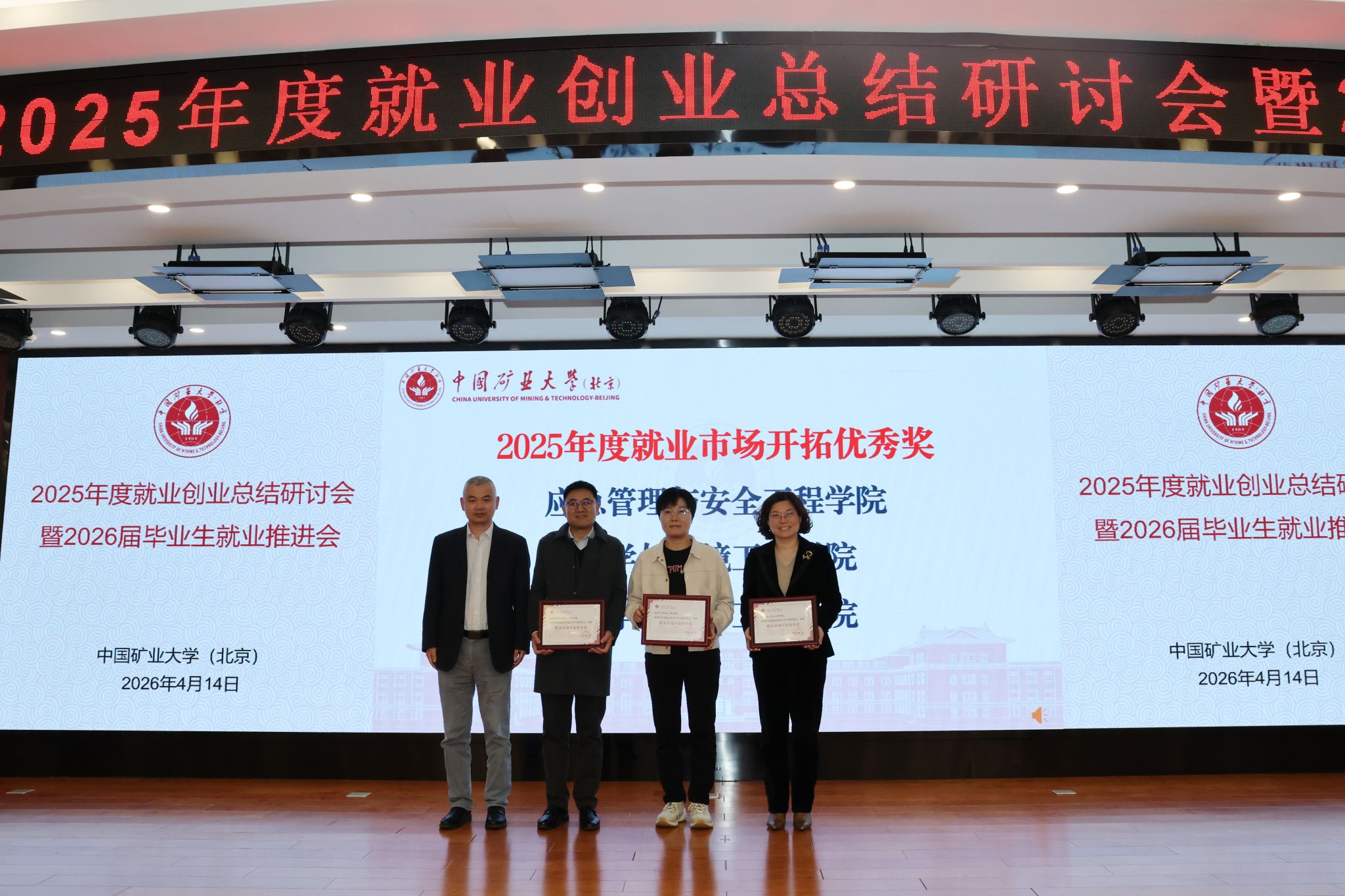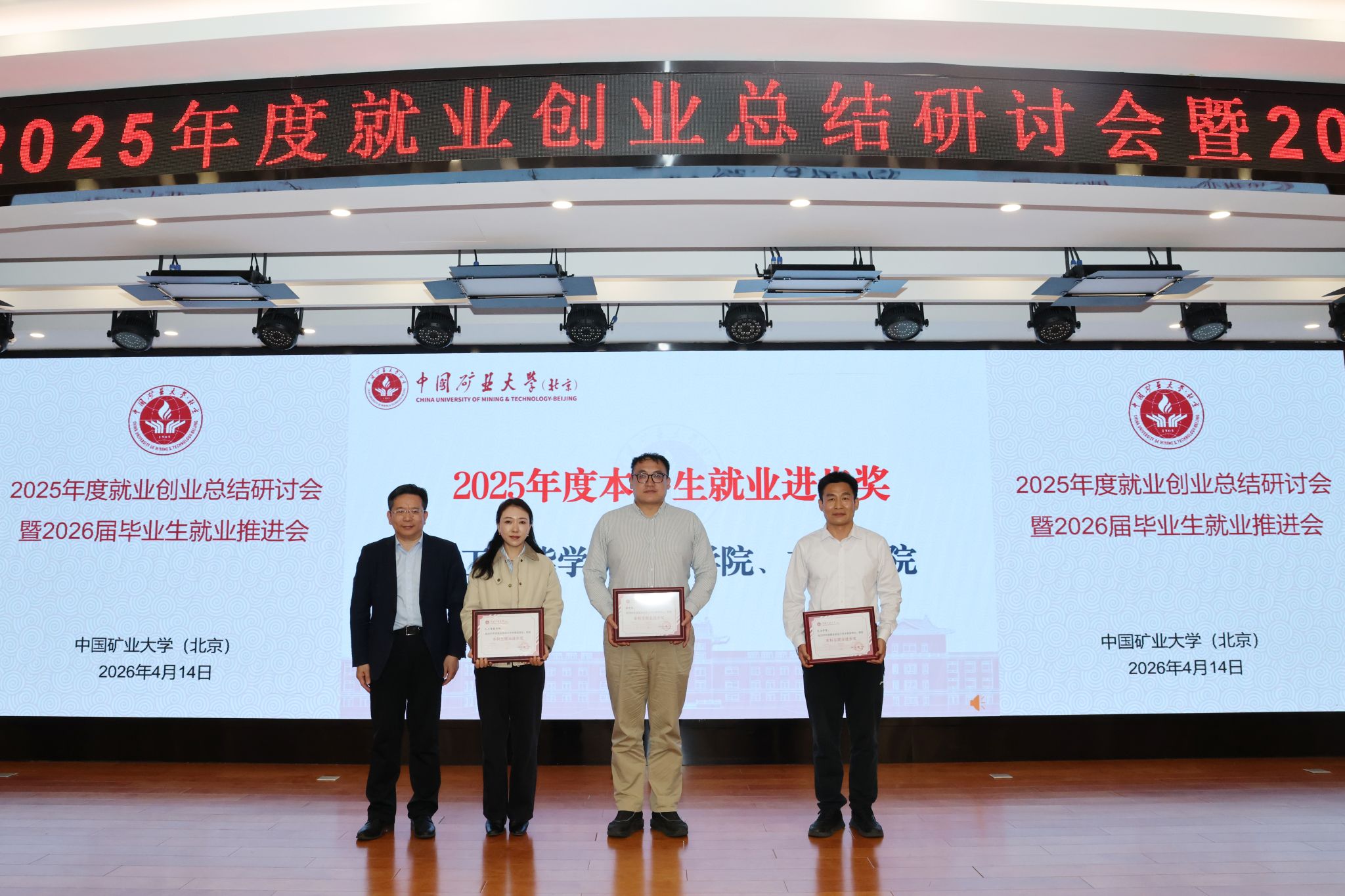 副校长崔希民为获得2025年度研究生就业优秀奖的学院颁发奖牌