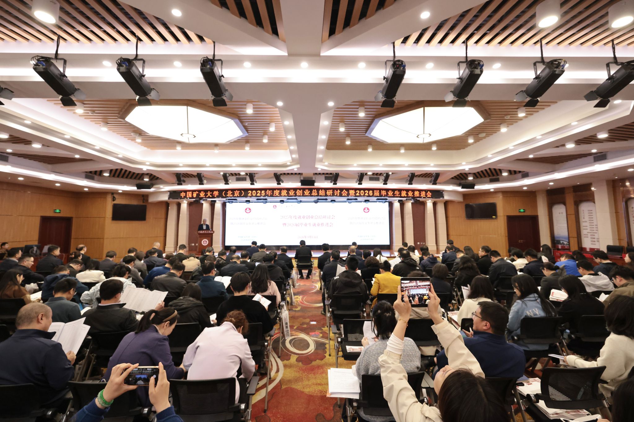 学生工作处处长赵麟对学校2025年度就业创业工作开展情况进行了全面回顾和总结。2025年度就业创业工作先进单位能源与矿业学院、地球科学与测绘工程学院、化学与环境工程学院依次作了典型发言与工作交流,为各单位提供了宝贵经验和做法。2025年度就业创业先进个人代表、管理学院教师张永亮作经验交流发言,详细介绍了大数据专业开展就业工作的具体做法和心得体会。