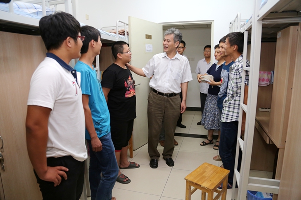 朱书全一行来到学生宿舍,详细询问同学们的家庭情况、入学报到情况和对学校环境的适应情况等,并重点看望了部分家庭经济困难学生、边远地区学生、少数民族学生。