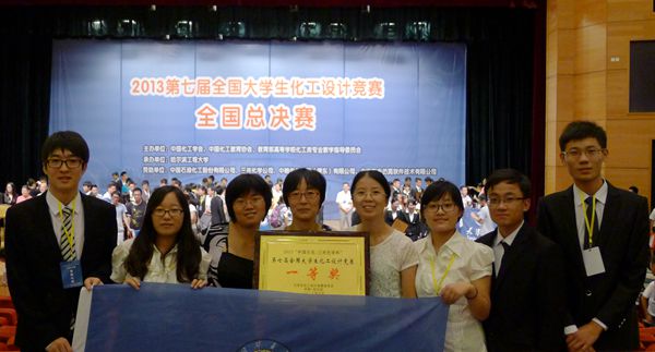 本次竞赛,来自清华大学、天津大学、浙江大学以及包括我校在内的全国164所高校的1000多支团队报名参赛,最终710支团队完成设计任务并提交了作品。我校在教练组曹俊雅、李昀衡、张香兰、张军和雷泽等老师的指导下,由2010级化学工程与工艺专业为主组队参赛的9支团队全部按时提交了作品。经过函评、分区预选赛和全国总决赛,我校由梁文强、何涛、张森林、东赫、刘闪闪组成的“Chem-Coal Style”团队荣获全国总决赛一等奖,由张鸿雁、刘松、蒋婷、米亮、许凯组成的“Dream-High”团队荣获全国二等奖。另外,还有六支团队获得了全国三等奖。