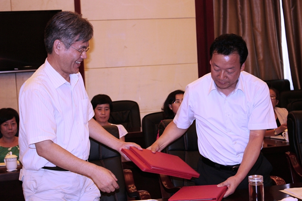 我校党委副书记朱书全和庆阳市副市长白振海交换协议