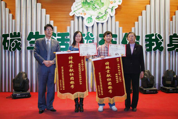 与会嘉宾为低碳环保先行企业、优秀环保小品、优秀环保吉祥物、优秀环保志愿者、优秀社团和特殊贡献社团进行颁奖表彰。我校绿缘根与芽社团被评为“特殊贡献社团”,吉祥物绿环宝贝获得二等奖,2010级学生谢高峰、刘丹获得优秀志愿者奖,环保小品获得优秀奖。