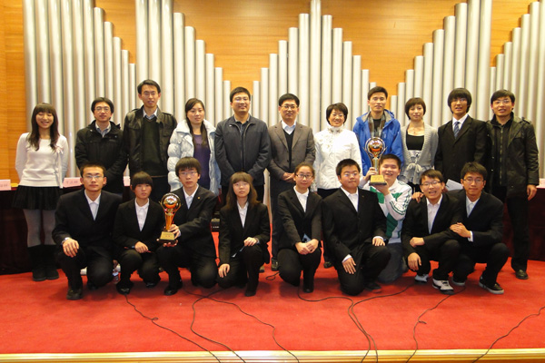 鲍玲为获得最佳组织奖的化环学院和道德风尚奖的机电学院、管理学院、力建学院、文法学院颁发了证书,安宇为获得最佳辩手称号的7名同学颁发了奖状,冠、亚、季军的得主分别是地测学院、资源学院和理学院,王磊为他们颁发了奖杯。