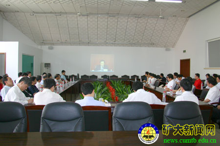 校党政领导杨仁树、乔建永、孙继平、范迅、姜耀东、王忠强、朱书全在我校1号办公楼第一会议室分会场出席会议,全校副处级以上干部也参加了分会场会议。