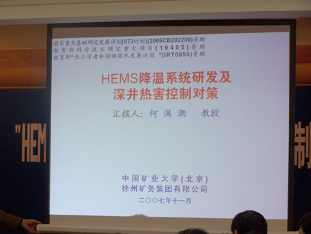 11月16日,教育部在江苏省徐州市组织并主持召开了“HEMS降温系统研发及深部矿井热害控制对策”项目的技术成果鉴定会,该项目得到了教育部重大项目、教育部创新团队项目和国家973项目联合资助,由何满潮教授领导的科研团队历时四年完成。