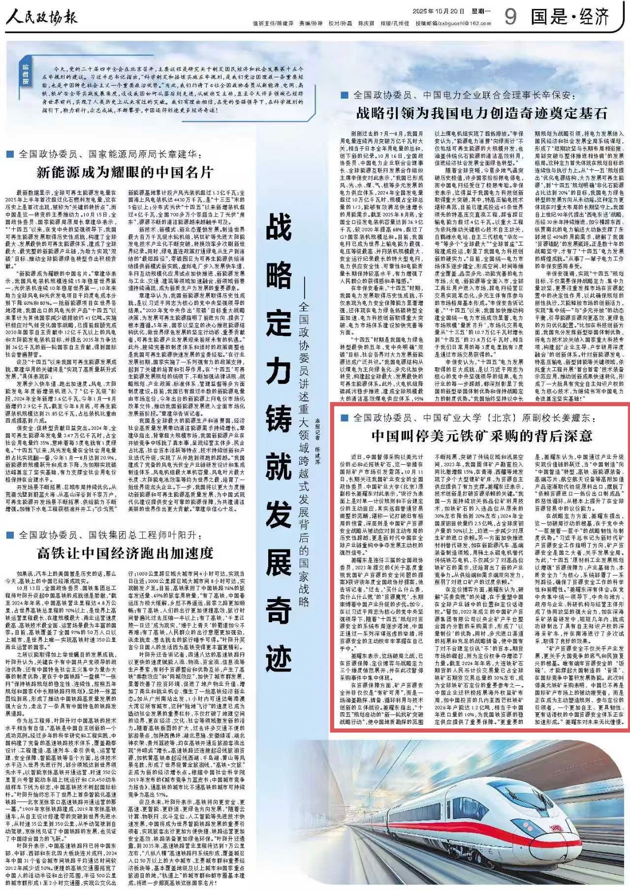 姜耀东是连任三届的全国政协委员,2023年提交的《关于高度重视我国矿产资源的安全问题的提案》获评该年度全国政协好提案,他告诉记者,“过去,‘买什么什么贵,卖什么什么贱’的‘资源魔咒’,长期束缚着中国产业升级的步伐。如今,在以习近平同志为核心的党中央坚强领导下,随着‘十四五’规划对资源安全的系统布局逐步落地,中国正通过一系列深谋远虑的举措,将资源安全的主动权牢牢掌握在自己手中。”