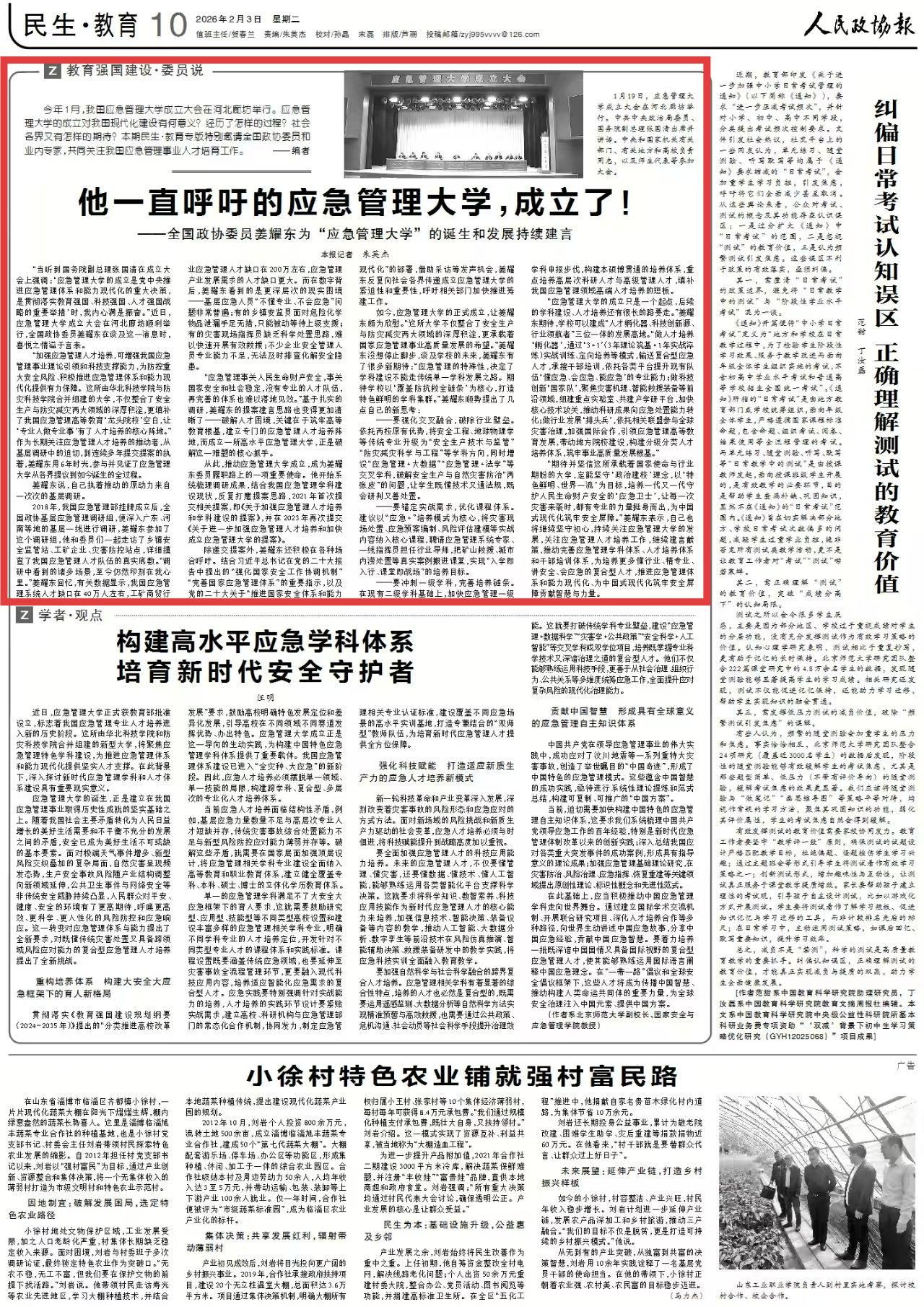 【人民政协报】他一直呼吁的应急管理大学,成立了!