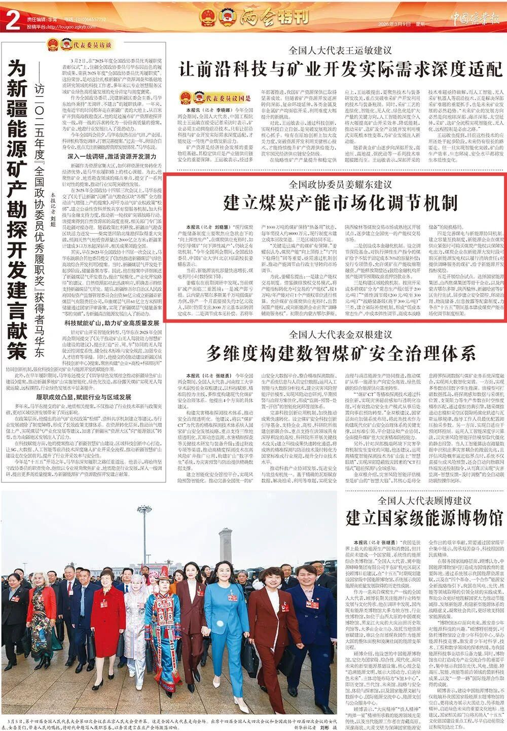 【中国矿业报】全国政协委员姜耀东建议:建立煤炭产能市场化调节机制