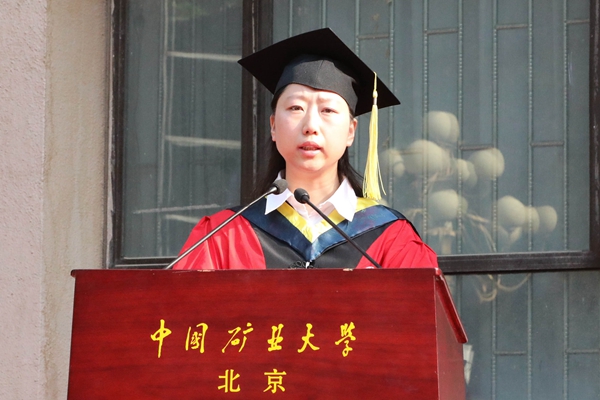 教师代表、应急管理与安全工程学院本科毕业班班主任栗婧希望同学们秉承“明德至善、好学力行”的校训精神,把个人发展融入当代中华民族伟大复兴的宏大进程中,锐意开拓,尽展才华。