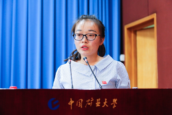 随后,“先进基层党组织”代表化学与环境工程学院环境与生物系党支部书记于彩虹、“优秀党务工作者”代表文法学院党委书记董会泽、“优秀共产党员”教师代表资源与安全工程学院张守宝、“优秀共产党员”学生代表理学院江小丹分别发言。全体与会党员举起右手,面向党旗,一起重温了入党誓词。