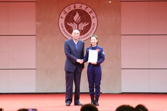 活动期间,中国矿业大学(北京)校长、党委副书记、中国工程院院士葛世荣为王亚平颁发感谢信。