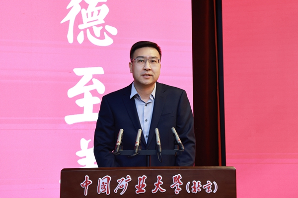 北京师范大学党委常委、副校长刘长旭代表兄弟高校致辞,对学校致以诚挚的祝贺。他表示,两校在多领域展开广泛深入的合作,极大地促进了校际间的优势互补与合作共赢。未来,期望两校进一步精诚合作、协同创新,在“双一流”建设的征程中携手奋进,也祝愿中国矿业大学(北京)实现学校高质量发展的新突破,早日建成世界一流能源科技大学。