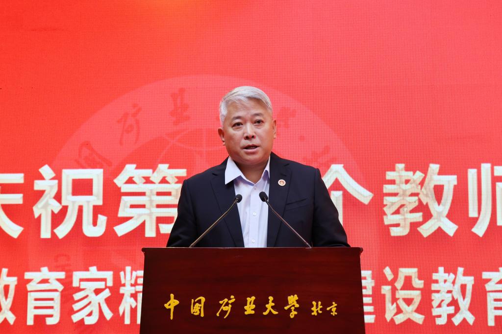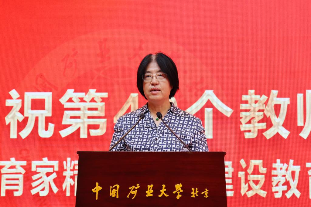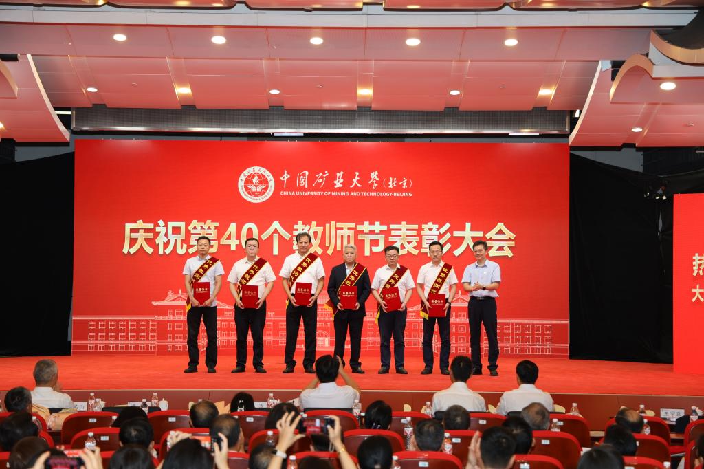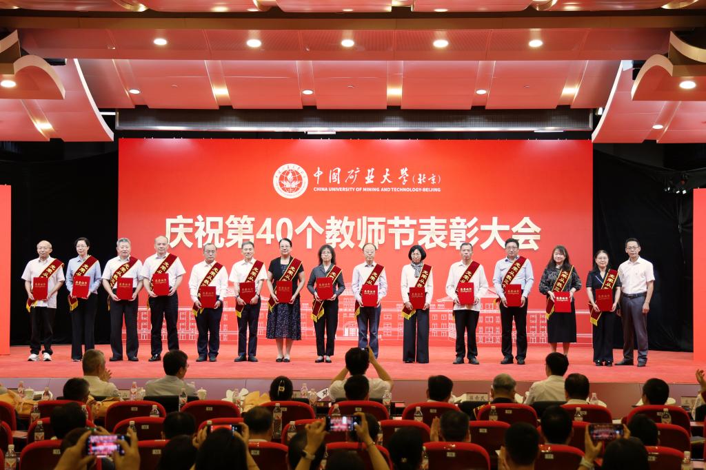 本网讯 强国必先强教,强教必先强师。9月10日下午,中国矿业大学(北京)庆祝第40个教师节表彰大会在科技会堂举行,学习贯彻习近平总书记在全国教育大会上的重要讲话精神。大会以“大力弘扬教育家精神 加快建设教育强国”为主题,表彰荣休教师、从事教育工作满30年教师,以及在党建思政、教书育人、科技创新等领域取得优异成绩的教师代表。校党委书记韩尚峰发表讲话。校长、党委副书记刘波主持会议。副校长崔希民、谭凯、汪文生,校党委副书记、纪委书记魏名山,原校领导朱书全、董晞、王家臣出席大会,党政机关、各学院(部)有关负责人、教师代表、学生代表参加大会。