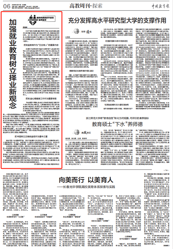 校党委书记韩尚峰在《中国教育报》2025年06月11日第6版发表署名文章《加强就业教育树立择业新观念》,请看报道——
