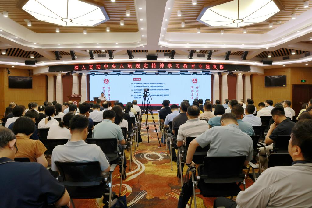 本网讯 7月4日,校党委书记韩尚峰在福中苑报告厅,讲授题为“深化作风建设,以中央八项规定精神引领学校政治生态建设”专题党课,学校领导班子成员、全体副处级以上干部、党支部书记代表、党员代表等聆听了党课。