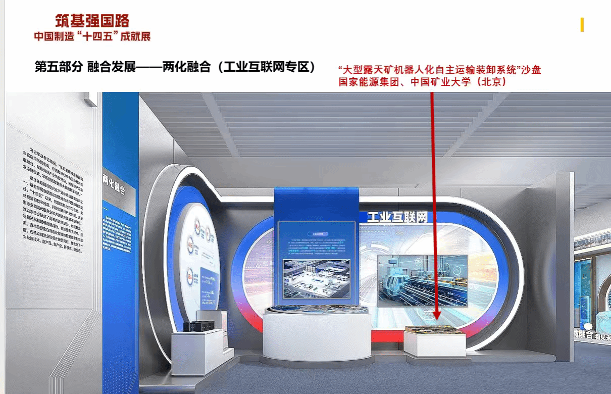 本网讯 2025年12月29日,“筑基强国路——中国制造‘十四五’成就展”在中国国家博物馆正式拉开帷幕。在展览融合发展区,由中国矿业大学(北京)与国家能源集团联合研发“大型露天矿机器人化自主运输装卸系统”沙盘精彩亮相,这也是双方产学研协同创新成果首次登上国家级展馆,集中展现智慧矿山建设的顶尖技术实力。