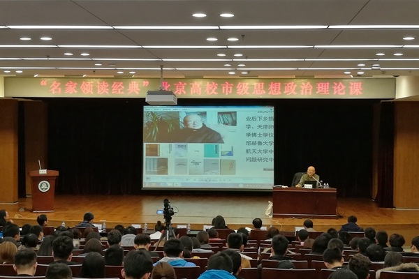 本网讯 11月16日晚,北京市“名家领读经典”政治理论公开课第五讲在北京林业大学学研中心广场地下一层音乐厅举行。本次课程内容由北京航空航天大学战略问题研究中心张文木教授主讲,主讲题目为“毛泽东诗词中的战略思想”。我校50余名师生到场聆听了本次课程。