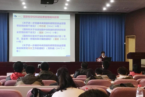 财务处副处长蒙福亘在主持会议时指出,此次从审计、科研、资产和财务管理角度进行全方位培训,有利于广大科研人员更好地理解掌握国家和学校科研经费管理政策,确保经费管理政策在我校真正落地。今后财务处将开展形式多样的培训活动,努力做到放管结合,确保科研经费安全、合规和高校使用。