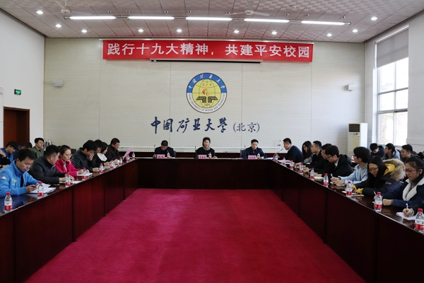 本网讯 为深入落实十九大精神,加强基层党支部建设,发挥党员先锋表率作用。资源与安全工程学院硕士17-3党支部、17-4党支部与校保卫处开展结对共建,并于11月23日在1号楼200会议室举行了“践行十九大,共建平安校园”共建启动式。校机关党委书记、统战部部长常维亚、校保卫处处长赵诚、资源与安全工程学院院长兼党委书记朱红青、校保卫处副处长杨威、资源与安全工程学院党委副书记杨大鹏以及保卫处党支部党员及资源与安全工程学院硕17-3、17-4党支部党员共27人参加启动式。大会由资源与安全工程学院党委副书记杨大鹏主持。