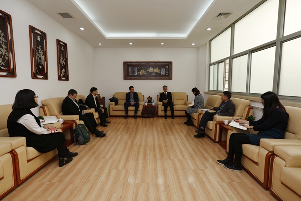 本网讯 12月1日,英国卡迪夫大学工学院负责国际事务的副院长Johannes Benedikt教授、海岸工程教授Shunqi Pan、建筑、土木与环境工程学科负责人Aled W.Davies博士来我校访问,副校长朱书全会见了代表团,参加会谈的还有力学与建筑工程学院、化学与环境工程学院、国际合作与交流处相关人员。