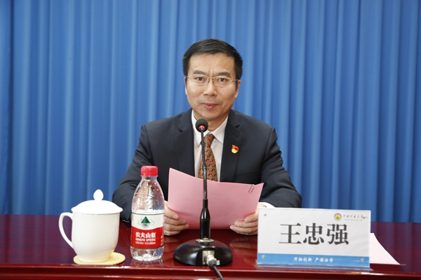王忠强在主持会议时指出,希望同学们认真领会讲话精神,不忘初心,牢记使命,心存感恩,继续发扬我校“好学力行”的优良学风,勤奋学习,努力成才,以优异的成绩回报社会、回报母校。